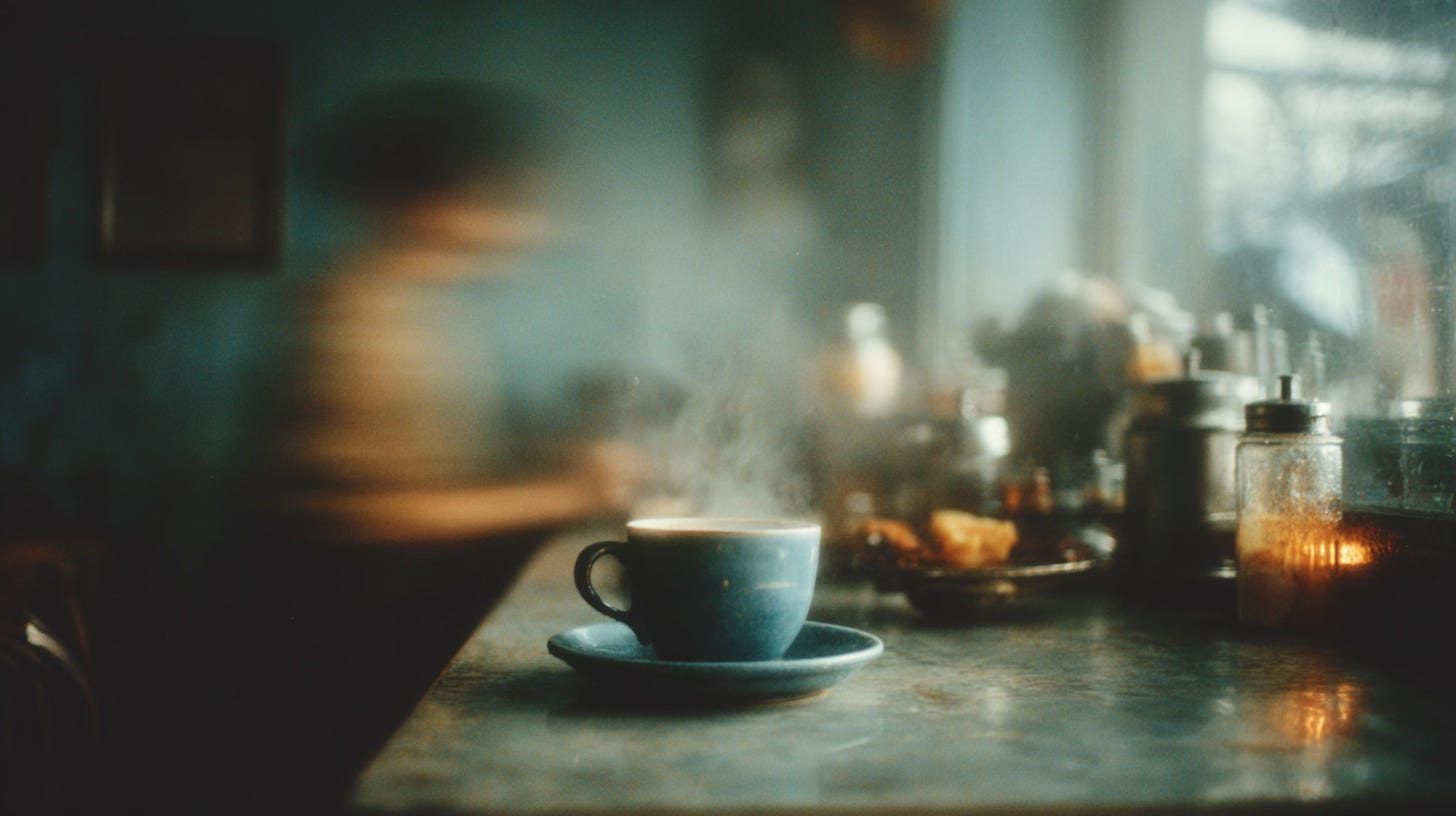 She drinks standing up. Watches people move through their routines. A man orders the same thing three times, forgetting he already has a cup. The counter woman gives him all three cups without comment. He’ll figure it out or he won’t.