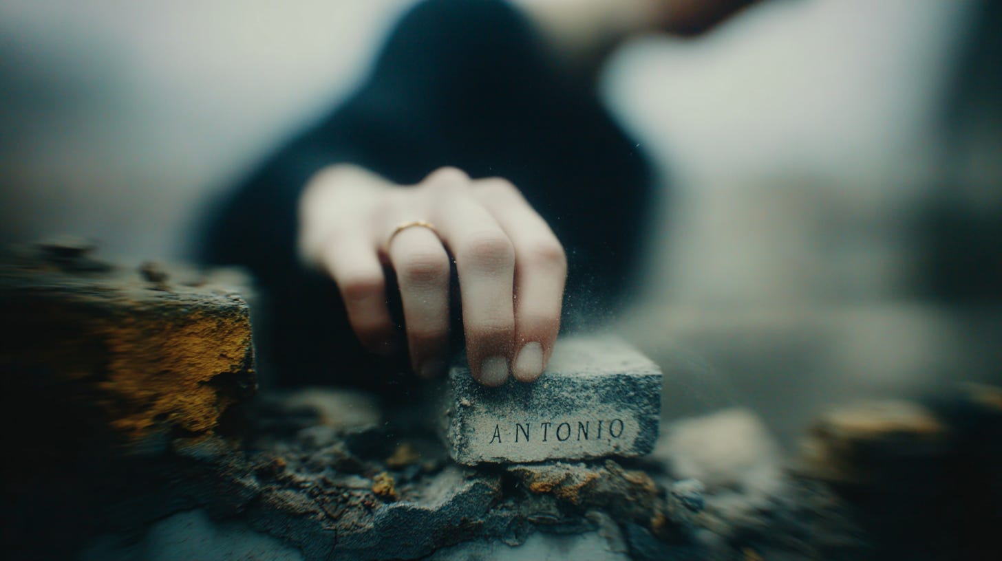 She stares at what she’s written. The name means nothing. Everything. Her hand cramping around the stone. Five letters she shouldn’t know how to spell but does. Perfectly. Her wrist curves to add the accent mark her mind doesn’t remember: ANTONIO.